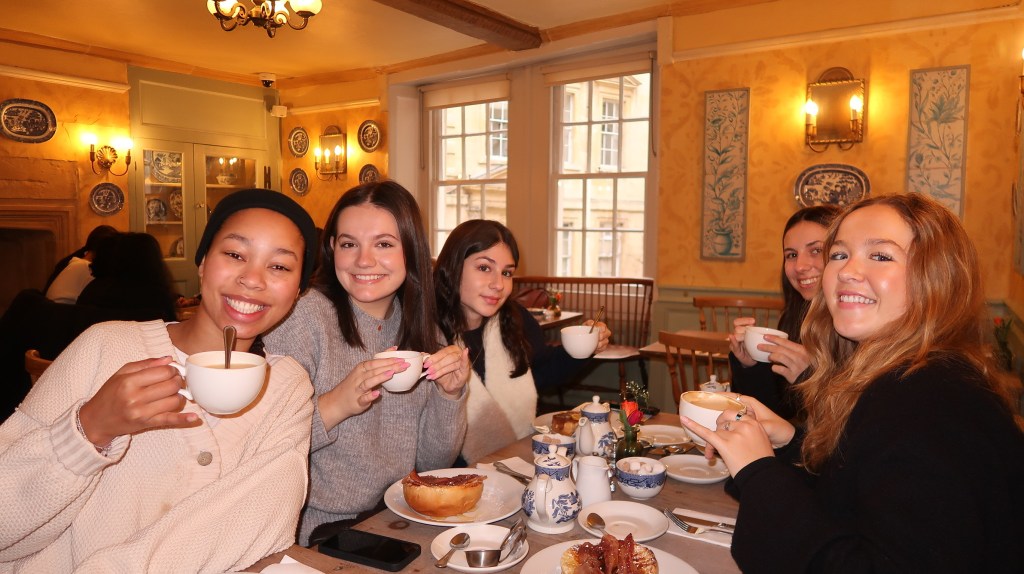 Our train arrived in Bath at 9:50 a.m. and we were sitting in Sally Lunn’s Historic Eating House at 10:00 a.m. when it opened. The restaurant and museum is famous for their “Sally Lunn Bun” made with a recipe from the 1600’s. As any good Englishwoman would, all six of us got a Sally Lunn Bun and tea. The restaurant’s placement inside of the oldest house in Bath (1482, to be exact), combined with the world famous buns that we were served made this a wonderful kick off to our day.