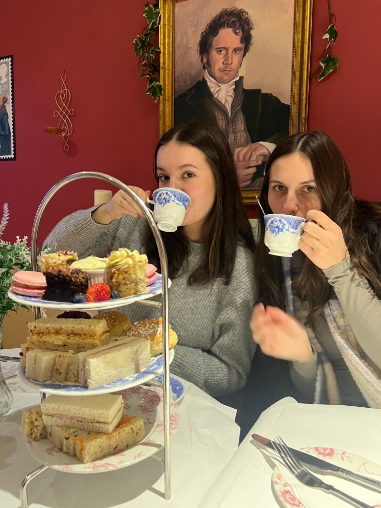 Leaving the luxurious field behind us, we booked it to our reservation at the Jane Austen Centre’s Regency Tea Room for “Tea with Mr. Darcy.” Here we enjoyed refillable tea and an assortment of pastries. Jane Austen is dubbed as “Bath’s most famous resident” and so we felt that we just had to honor her by breaking metaphorical bread (tea) in a place dedicated to her legacy.