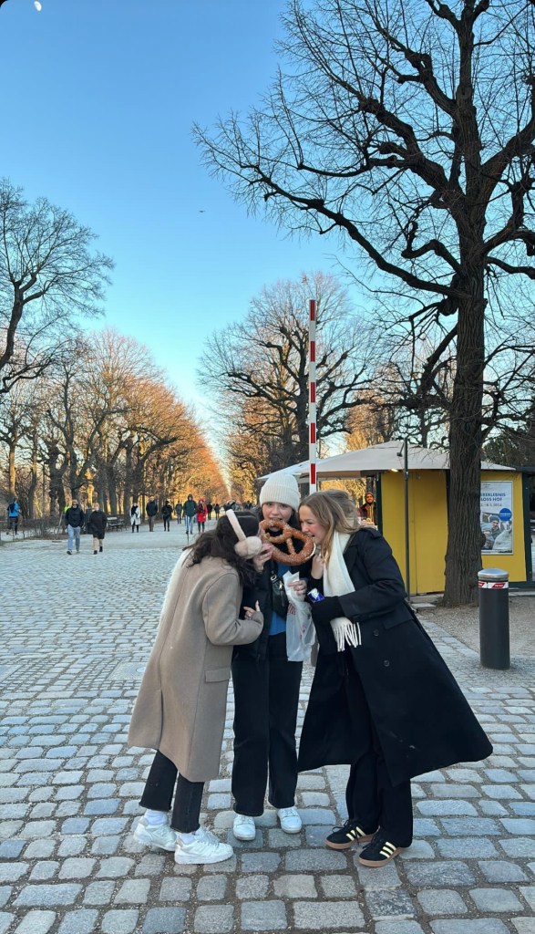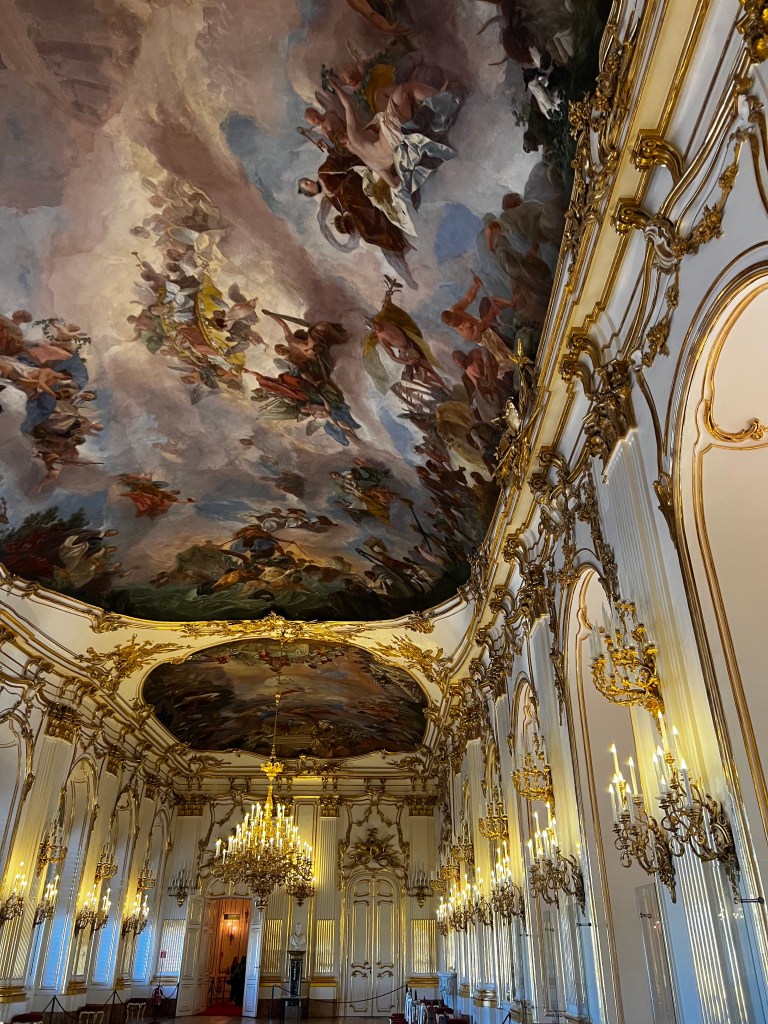 On our way to Schönbrunn Palace, we ran into Emma, Emma and Mame-Diarra in the metro station on a stroke of luck, so all six of us decided to head over there together! After getting lunch near the palace and walking around the gardens a bit, we entered inside. Formerly the main summer residence of the Hapsburgs, the Schönbrunn Palace boasts beautiful Baroque architecture and Empress Maria Theresa’s original furnishing and decoration selections. The palace was so so beautiful and captivating to walk through with an audio guide. My favorite thing that I found through our perusal of the palace was the stunning painting of the 1760 wedding ceremony of soon-to-be emperor Joseph II to Isabella of Parma. What was interesting about this was that the artist, Martin Van Meytens, painted a young Wolfgang Mozart with his Dad into the crowd per Maria Theresa’s request after Mozart played at Schönbrunn at 6-years-old (2 years after the wedding). I just think this is a great fun fact, and very cute that Maria Theresa thought Mozart and his Dad should be included in the scene, despite them not having actually attended the ceremony. When leaving the palace, we picked up a gigantic salted pretzel and Lindt hot chocolate from a spout in the surrounding streets.
